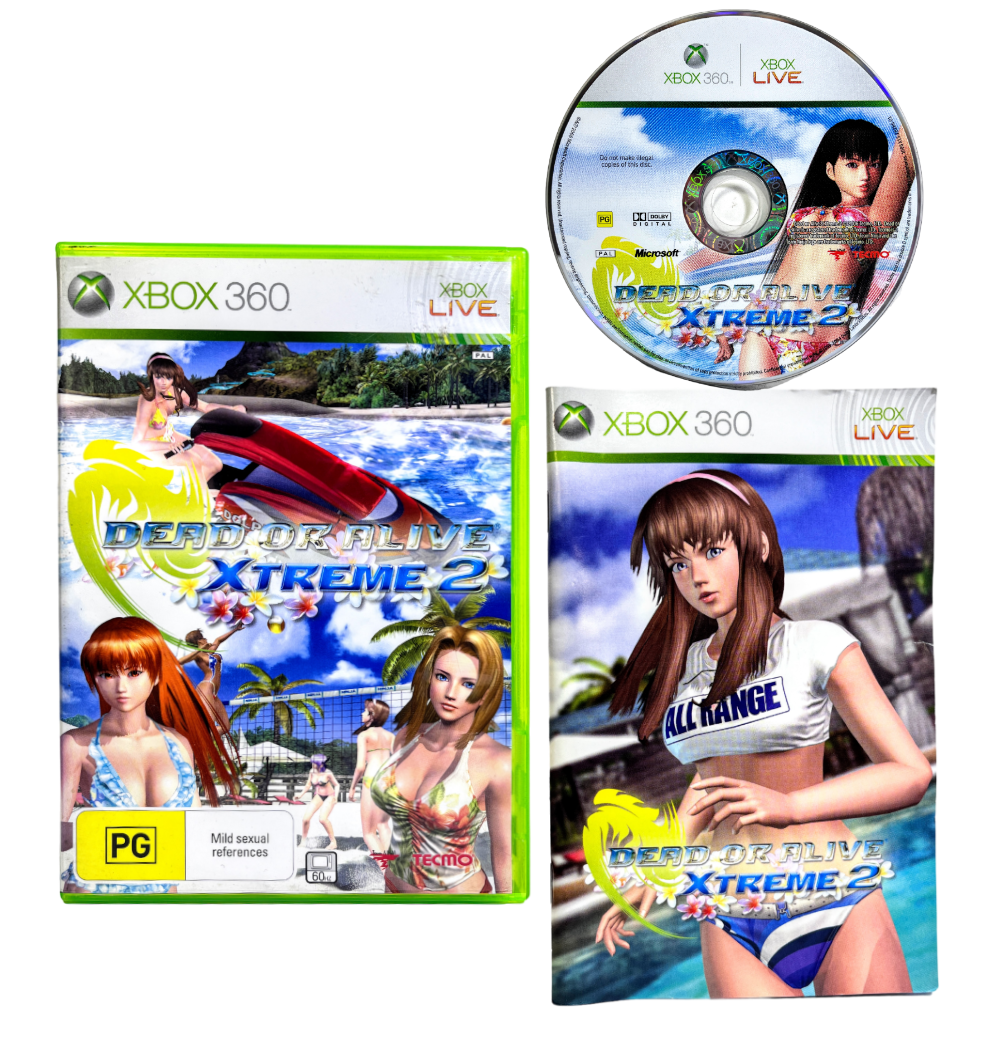 RARE & Collectible XBox 360 Game in Excellent Condition & 100% Complete with Contents: DEAD OR ALIVE XTREME 2 / Dead of Alive Extreme 2 for Xbox 360. This preowned game is in superb condition with only the faintest of disc surface imperfections, and complete with case + cover + manual / booklet + game disc.