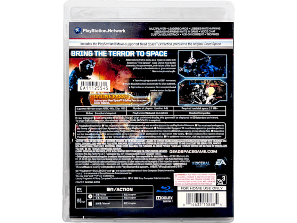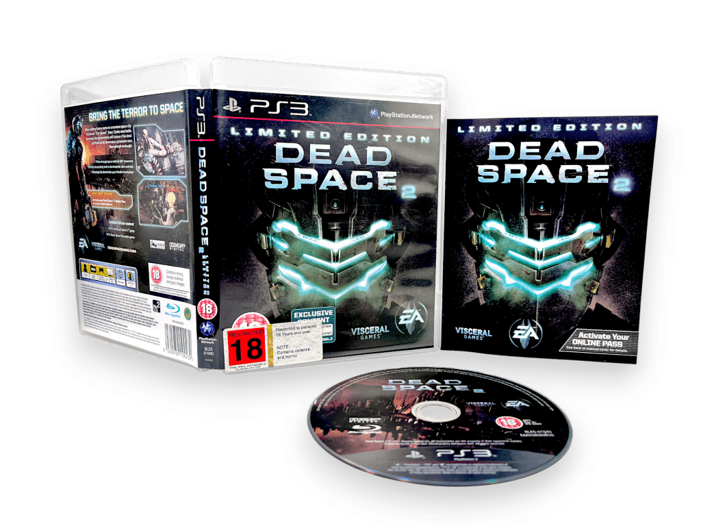 Excellent Condition & 100% complete with manual: DEAD SPACE 2 LIMITED EDITION for SONY PlayStation 3 / PS3. This preowned game is a very tidy and complete collector’s item, with case + cover + manual / booklet + game disc. Note that the voucher code on the back of the manual has expired, so the game on the disc is the FULL DEAD SPACE 2 game without any bonus downloadable “Limited Edition” content.