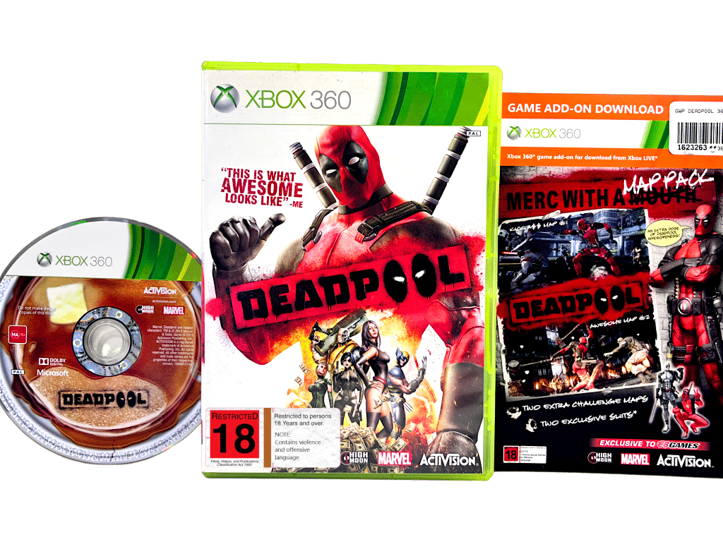 RARE & Collectible Marvel Super-Hero Game in Excellent Condition & 100% complete with contents: DEADPOOL / Dead Pool for Xbox 360. This preowned game is in superb condition and comes complete with case, cover, official Deadpool voucher card, and game disc. Refer photographs for included contents. Note that the bonus voucher code is no longer valid, but this was promotional only and is not required for gameplay or completion. The full Deadpool game is included on the game disc.