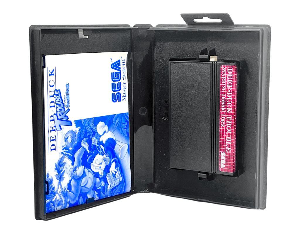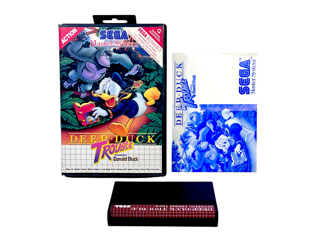 Deep Duck Trouble Starring Donald Duck (Sega Master System) *EXCELLENT & COMPLETE*. This preowned SEGA Master System game is in excellent condition and comes complete with pictured case + cover + instruction manual / booklet + game cartridge. Refer photographs.