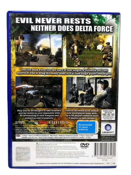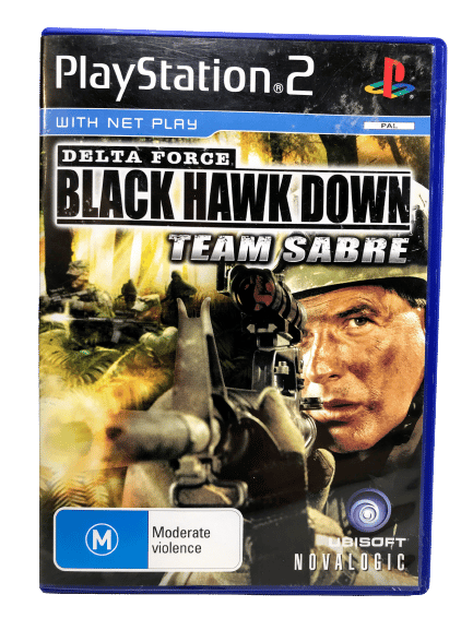 Good condition & 100% Complete with Manual / booklet: Delta Force BLACK HAWK DOWN Team Sabre for SONY PlayStation 2 / PS2. This preowned game is in good condition with light markings and very mild surface scratches only, and comes complete with case + cover + manual / booklet + game disc. NOTE: when stock reduces to only one (1) copy of this particular game showing in stock, the manual is no longer included.