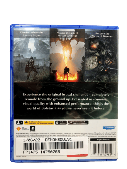 DEMON’S SOULS / DEMONS SOULS for SONY PlayStation 5 / PS5. This preowned game is in excellent condition and comes complete with case, cover, carded insert, and game disc.