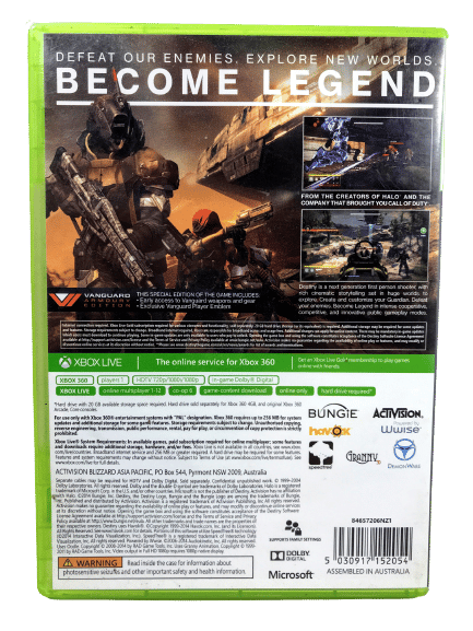 EXCELLENT CONDITION: DESTINY for XBox 360. This preowned game is in pristine condition and includes case + cover + game disc. Promo cards not included, but these were downloadable add-ons only and are not required for gameplay or completion. The full Destiny game is included on the game disc. Internet connection required to play this game.
