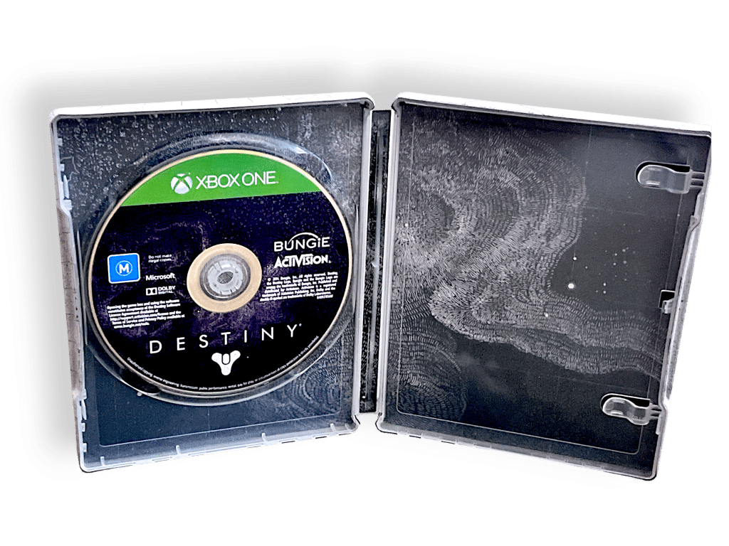 Destiny (Xbox One) STEEL CASE COLLECTOR’S EDITION. This preowned authentic Limited Release Steelbook Edition is in Excellent Condition it includes the official steel case plus the game disc only. It does not include any of the internal booklets or papers. Refer to images 2 and 3 for actual item.
