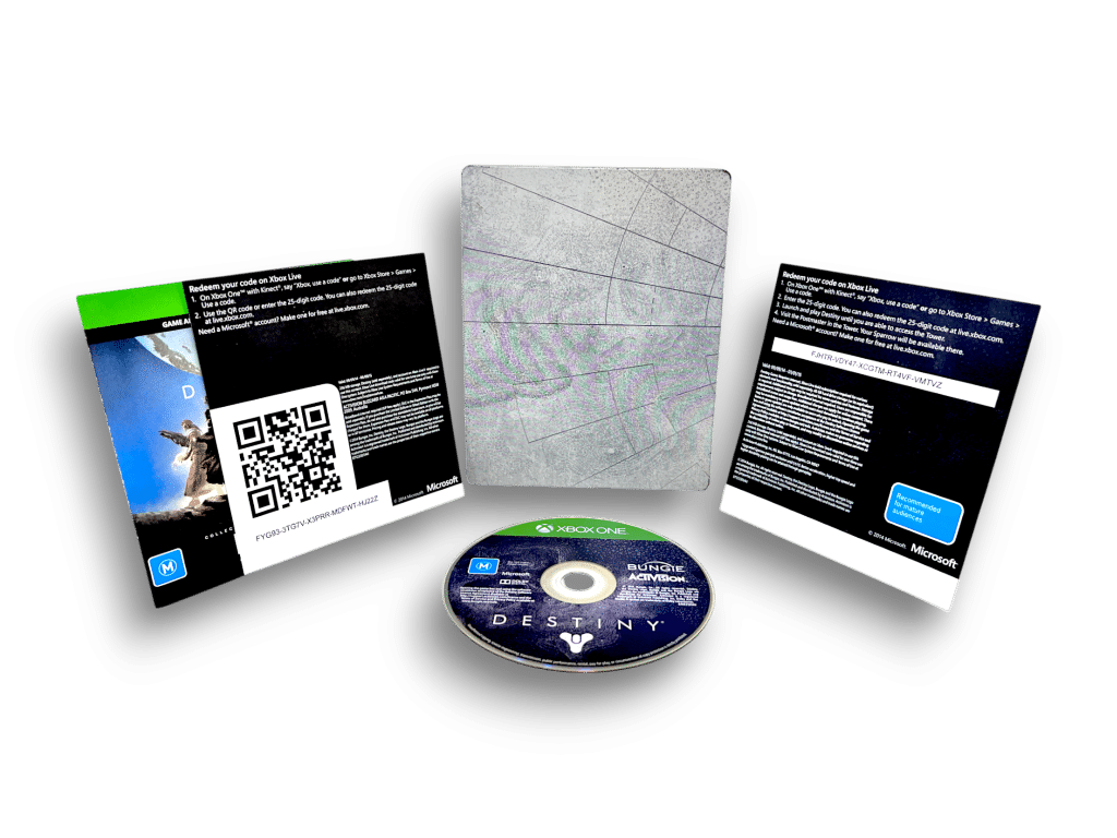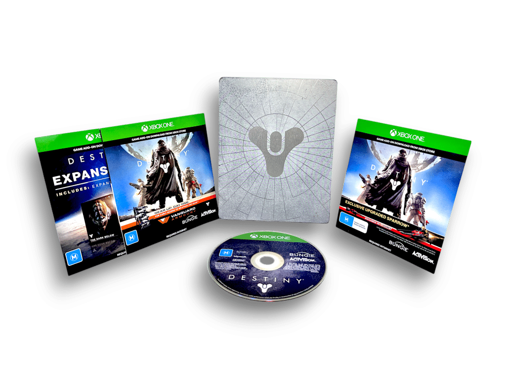 Follow Appleby Games on Facebook & Instagram for Free $20 Vouchers for every $200 spent with our Loyalty Programme, product updates, competitions, and find our store opening hours on Google. **** This Xbox One steelbook edition of Destiny showcases Bungie’s sci-fi world in premium packaging. It often came bundled with extras like maps, lore, or art. Collectors appreciate the futuristic metallic artwork and durability. A strong addition for fans of Destiny and Xbox collectors alike. *** SIMILAR PRODUCTS PURCHASED BY COLLECTORS – EACH SOLD SEPARATELY: Destiny 2 Collector Editions, Xbox One Legendary Editions, Action Shooter Steelbooks