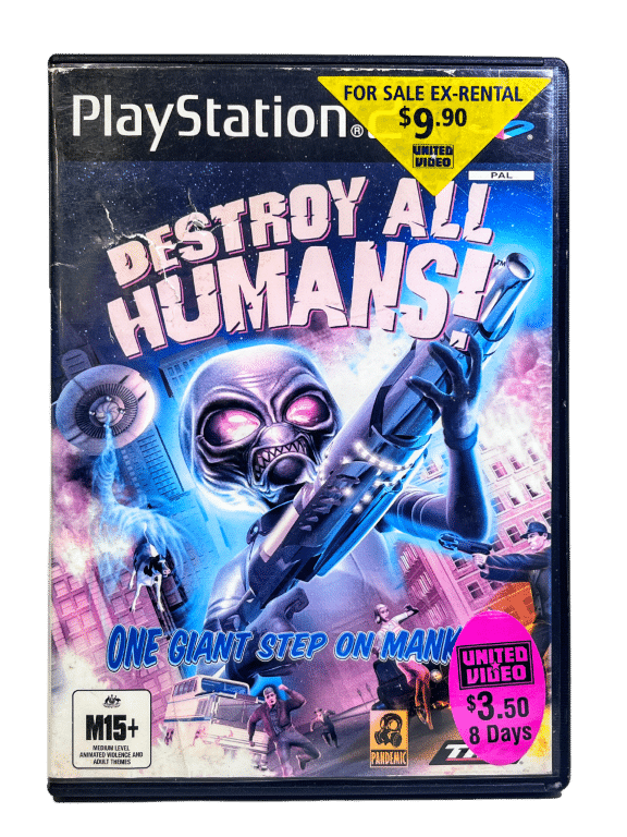 DESTROY ALL HUMANS The Video Game for SONY PlayStation 2. This preowned game is in good condition and includes pictured case + cover + game disc.