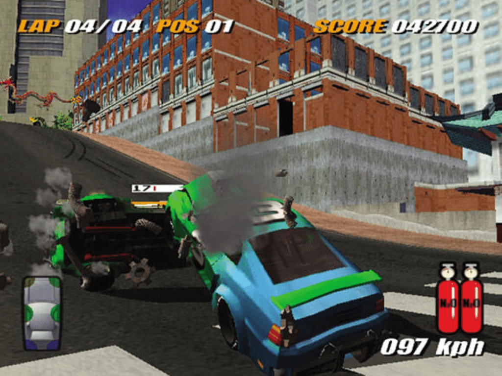 As a flagship launch-title, the original Destruction Derby was a powerful demonstration of PlayStation gaming values. Liberating, cathartic and (for its time!) brutally realistic, it freed gamers from the restrictions associated with traditional driving games. Subsequent sequels performed well and added numerous features; total Destruction Derby sales now total 3 million +!! However, by the third incarnation it became clear that the limitations of the PSX were restricting the improvement of the franchise’s basic game proposition. The move to the PS2 promises to reinvigorate this much-loved series: the improved graphics and game engine made available on the next-generation platform restore the realism and therefore the satisfaction of destruction racing. The series’ basic enjoyable premise remains the same – take control of a fully destructible car and throw it around a series of tracks and bowls. With each collision earning crucial turbo boost and grid positions, players are rewarded not just for skilful cornering but for hammering their opponents to pieces with their own vehicles! As bumpers drop off, knackered radiators steam and doors flap open, the competition to get to first place gets ever more heated. Gone are the muddy-coloured stock cars and old bangers; in their place is a colourful selection of larger-than-life muscle cars with which to wreak havoc in the world of illegal underground racing. A full range of distinct and stylised characters (complete with individual vehicles, stories, relationships, taunts and endings) replaces the previously anonymous and faceless drivers of previous incarnations. The biggest design change, however, is probably in the tracks, bowls and arenas. Imaginatively themed, these now offer both stunning looks and real variety. From looping the loop to ramping huge gaps to avoiding swinging wrecking balls to cruising crowded Chinatown marketplaces, each environment throws new challenges at the player. Most importantly, this latest incarnation sees Destruction Derby going online! Just as DD1 showed early PlayStation consumers that console gaming could be easy, fun and accessible, so DD4 will support the promise that not all online games are geeky, clan-based first person shooters! It is hard to imagine an online title further removed from the ‘Quake on PC’ mould – with up to 16 players competing simultaneously to destroy one another’s customised cars, DD4 Online play will be immediate, intense and inclusive. Moreover, the consumer association between the Network Adaptor and this exciting launch title should help to refresh the DD series, re-establishing it as innovative and cutting-edge, even for those without the BBA. Key Features: