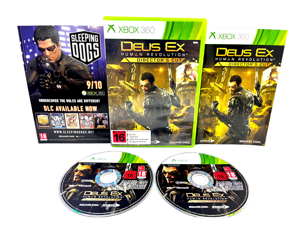 Mint condition & 100% complete with contents: Deux Ex Human Revolution DIRECTORS CUT for Xbox 360. Preowned but Like New. This is a very tidy and complete collector’s item. Refer photographs.
