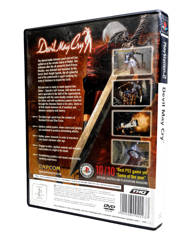 Excellent condition & 100% complete with contents: Devil May Cry the Original Game for SONY PlayStation 2 / PS2. This preowned game is in superb condition and comes complete with case + cover + manual / booklet + game disc. Case is the Genuine Black PlayStation 2 Case released with this game. A tidy and complete collector’s item.
