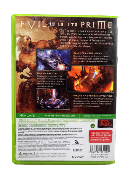 Excellent condition & 100% complete with contents: DIABLO III / Diablo 3 for XBox 360. This preowned game is in very tidy condition and comes complete with case + cover + manual / booklet + game disc.