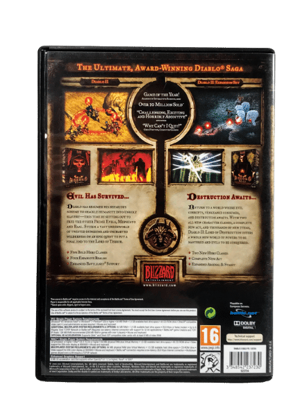 Mint condition & 100% complete with contents: DIABLO II / DIABLO 2 the PC game. This preowned game is in superb condition – a very tidy collector’s item, and comes complete with case (with game codes inside), cover, manual / booklet, 3 x game discs, plus bonus Expansion disc.