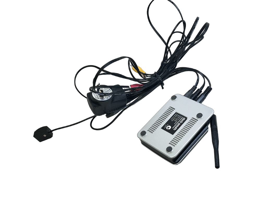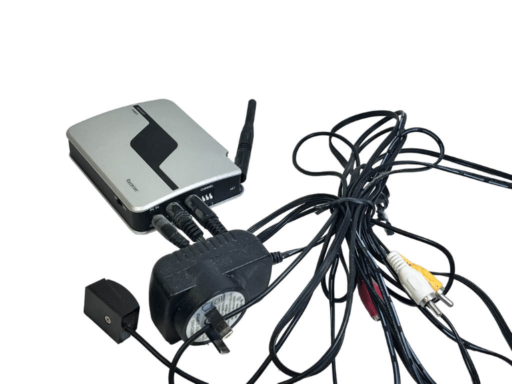Dick Smith Wireless 5.8Ghz Receiver. Receives video transmitted from another TV. Preowned and in excellent condition and complete with AC Power Adapter and accompanying AVI Leads. Receiver only.