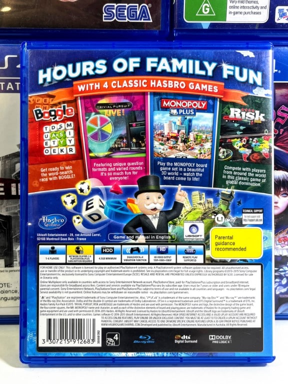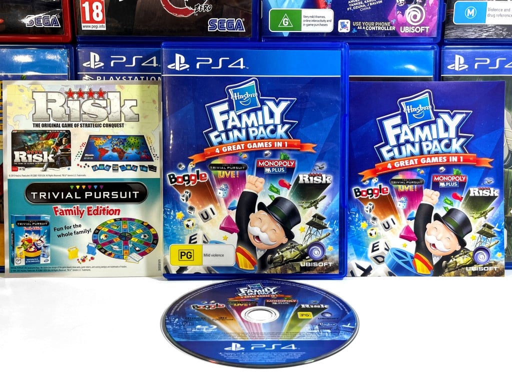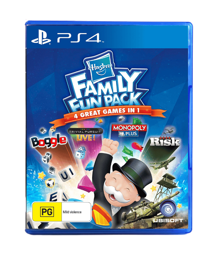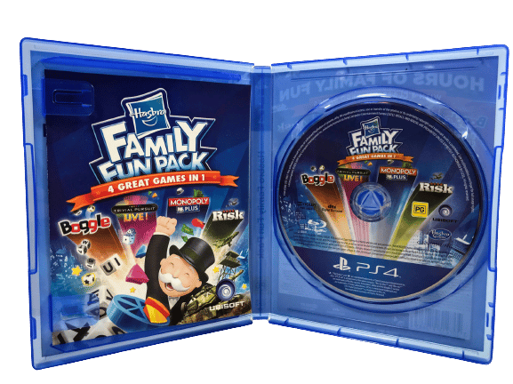 Excellent condition & 100% complete with contents: The HASBRO Family Fun Pack for SONY PlayStation 4 / PS4. This preowned game is in superb condition and comes complete with case, cover, manual / booklet, and game disc. The case itself has some laminate plastic wear, but this is purely cosmetic, and each of the internal contents are in great condition.