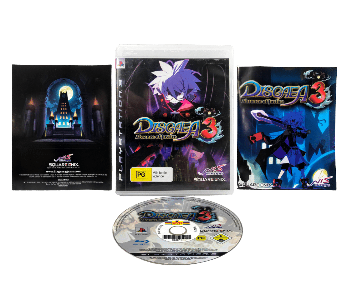 Excellent Condition & 100% Complete with Contents: Disgaea 3: Absence of Justice for SONY PlayStation 3 / PS3. This preowned game comes complete with case, cover, manual / booklet, and game disc.