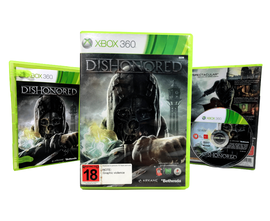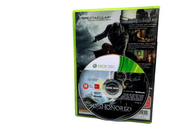 Good condition & 100% complete with contents: DISHONORED The Video Game / Dishonoured for Xbox 360. This preowned game is in superb condition and comes complete with cover + manual / booklet + game disc. Front page of the booklet has a small Video Ezy sticker on the front, and the case has the remains of an old price sticker, but these are purely cosmetic imperfections.