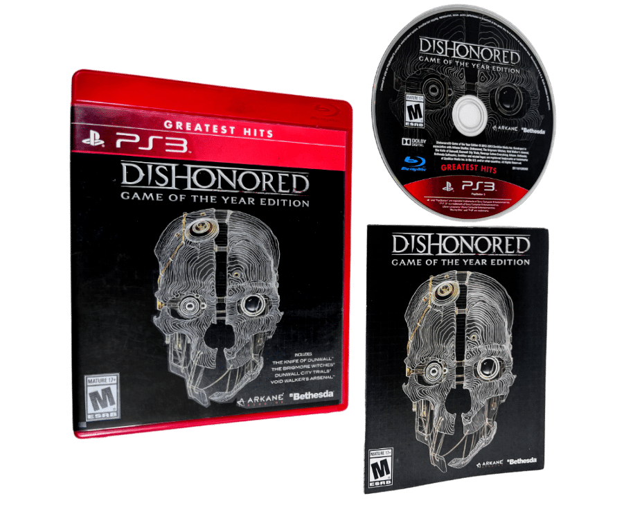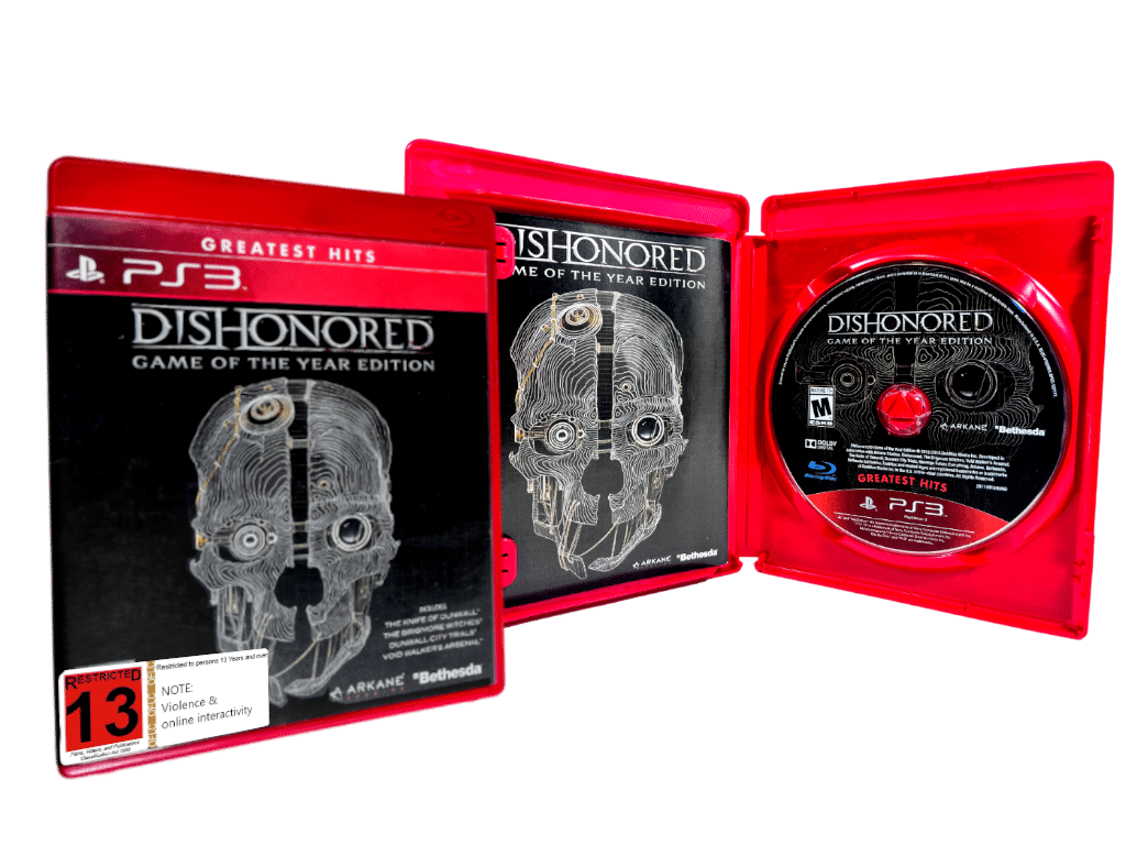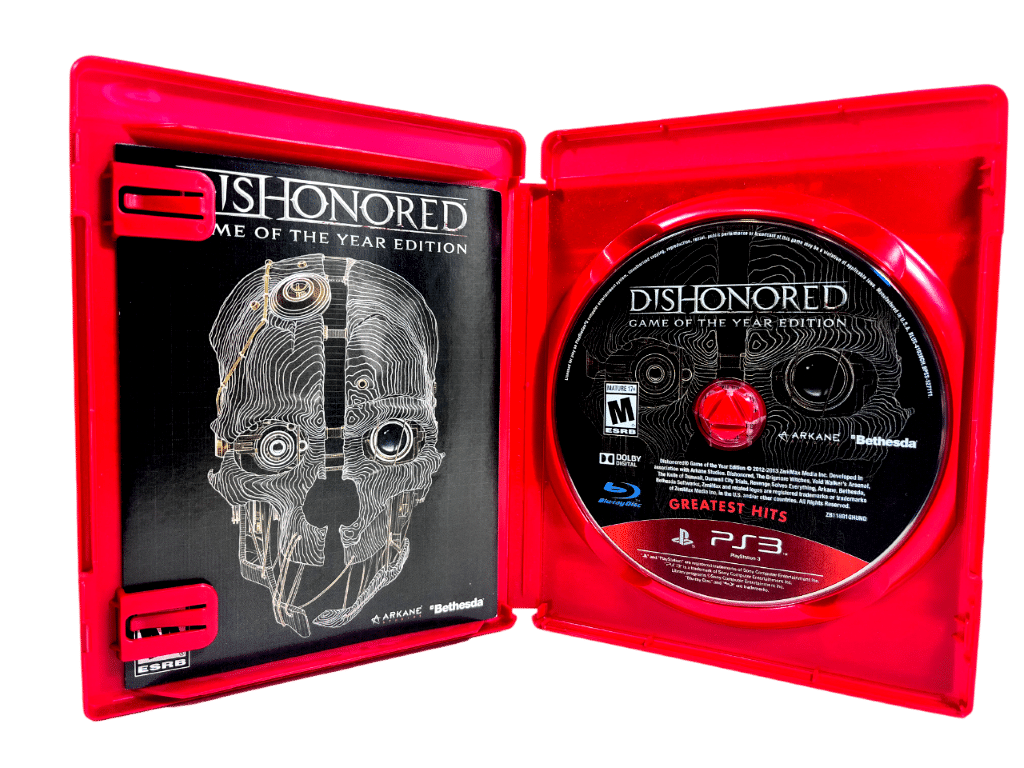 GENUINE RED CASE EDITION in Mint Condition & 100% Complete with Contents: Dishonored Game of the Year Edition for SONY PS3. This preowned game includes an authentic alternate print cover, RED CASE, manual / booklet and Game disc. A very tidy and complete collector’s item.