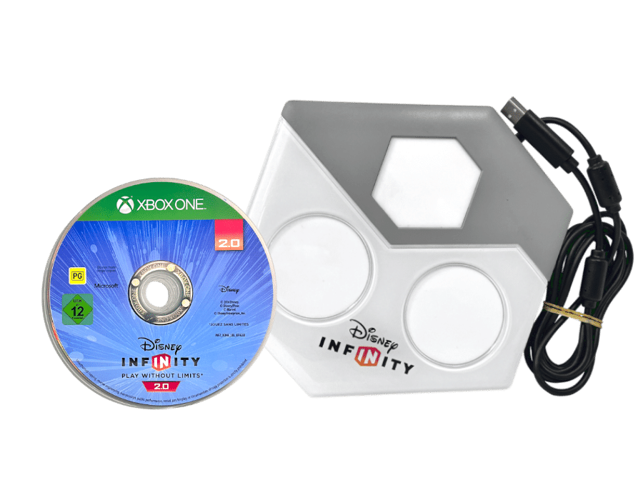 RARE MATCHING BUNDLE: Disney Infinity 2.0 Game + Matching Authentic Xbox One Disney Infinity Portal. This preowned Disney Infinity 2.0: Play Without Limits game bundle is for XBox One. These preowned items are each in good condition. Game disc comes inside an empty blank case (not original case).