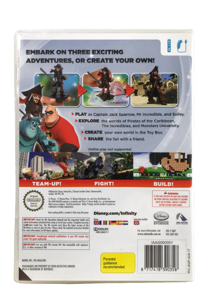 In Disney Infinity you have the freedom and endless opportunity to create stories and play experiences starring some of your favorite Disney and Disney/Pixar characters. Discover three Play Sets, including Monsters University, Pirates of the Caribbean, and the Incredibles, with up to 2-player local co-op.