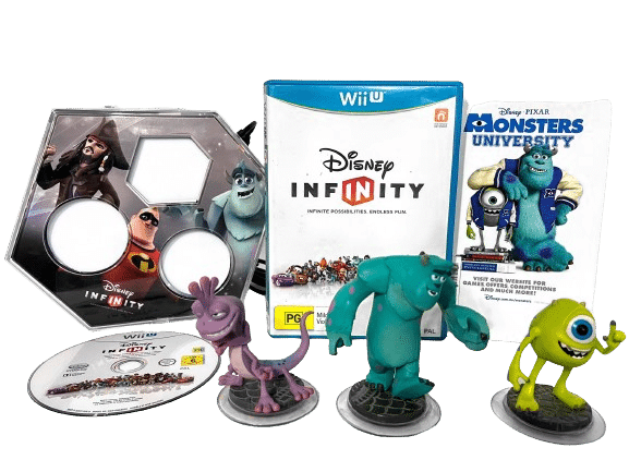 DISNEY INFINITY the original game + Playing Portal of Power (Customised with Clear Hard Case Protector pictured) + Figurines for Nintendo Wii U. This preowned game is in excellent condition, and comes complete with case, cover, manual / booklet, and game disc. Portal + Figures are each in excellent condition also: Monsters Inc Sulley + Randal Boggs + Mike Wizowski.