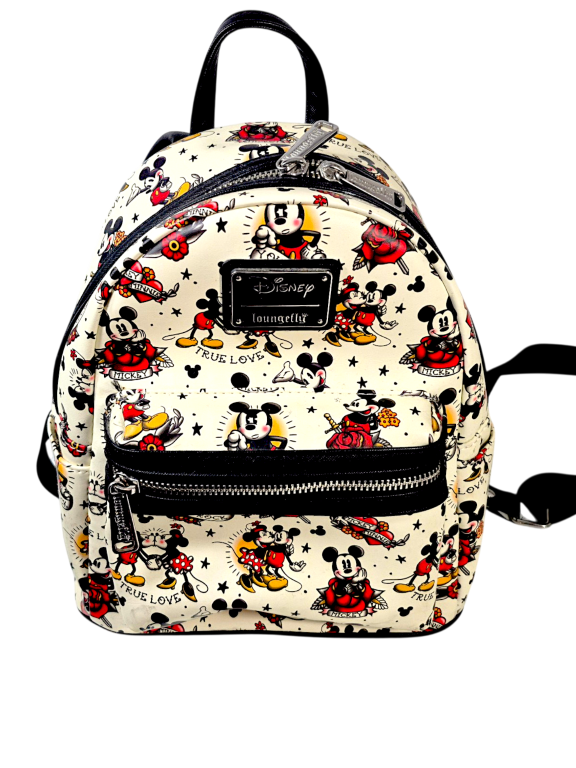 Disney Mickey Mouse Pattern Loungefly Mini Backpack. This preowned Genuine LOUNGEFLY Bag is a qualty backpack which carries Loungefly’s famous hallmark durability and stylish design. Refer photographs.