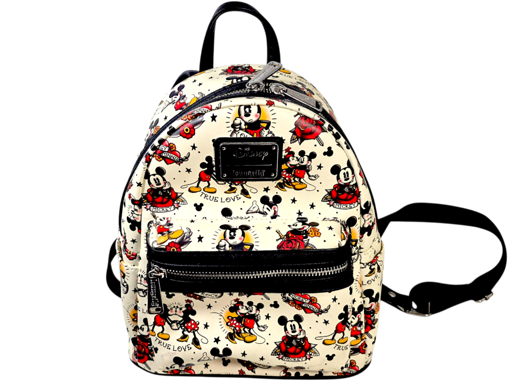 Description: A bold all-over Mickey Mouse print gives this Loungefly mini backpack a lively and classic Disney look. Featuring multiple vintage-style Mickey designs, it’s packed with personality and charm. Durable and compact, it’s perfect for fans wanting a fun everyday bag or a standout addition to a Disney collection.