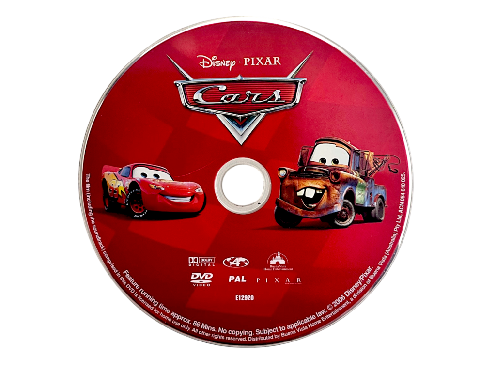 Disney Pixar Cars (DVD) . This pre-owned movie DVD disc plays well in spite of some light scratches. It comes inside an empty blank case. Please note that the original case is not included here.