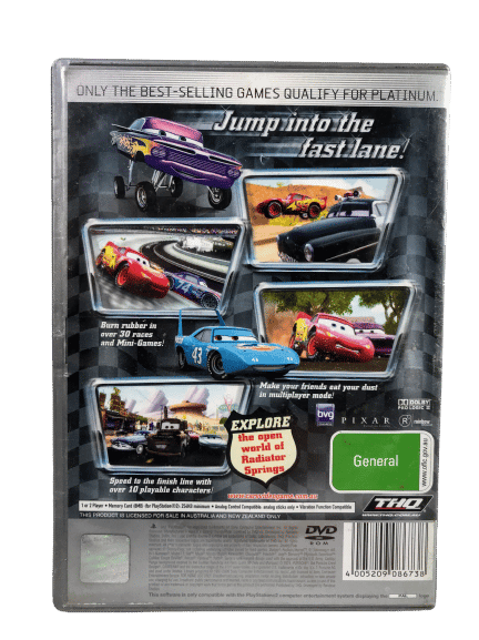 Good condition & 100% complete with contents: DISNEY PIXAR CARS The Video Game for SONY PlayStation 2 / PS2. This preowned game is in very good condition and includes case + cover + manual / booklet + game disc. Some very fine superficial markings / cosmetic scratches, but these are purely cosmetic and do not affect game play in any way.