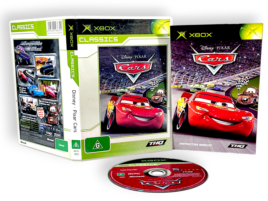 Disney Pixar Cars (Xbox) *EXCELLENT & COMPLETE*. This preowned game is in good condition with mild markings and light surface scratches only which do not hinder performance or gameplay in any way. This game includes pictured contents. Refer photographs.