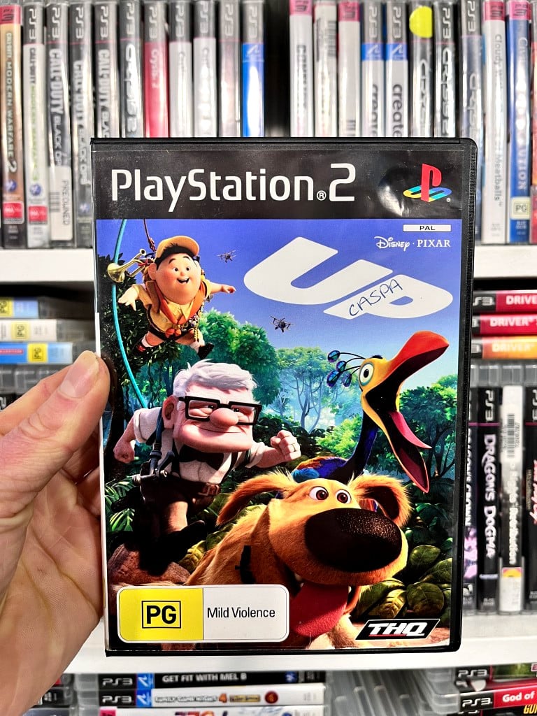 Excellent condition & 100% complete with contents: UP the video game of the movie for SONY PlayStation 2 / PS2. This preowned game is in superb condition with only the faintest of disc surface imperfections, and comes complete with case, cover, manual / booklet, and game disc. Case is a BLACK DVD case, so differs slightly to pictured blue case. The word, “CASPA” handwritten in small letters on the cover (refer image 2).