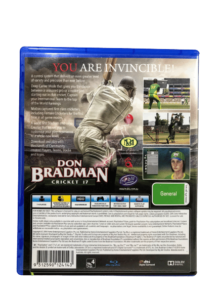 DON BRADMAN CRICKET ’17 for SONY PlayStation 4 / PS4. This preowned game disc is in excellent condition and comes complete with case + cover + manual / booklet. The manual and disc are each excellent. The paper cover has some visible paper wear (refer images 3 – 4), but this is a purely cosmetic imperfection, and each of the internal contents – game disc + instruction manual – are superb.
