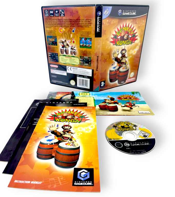 Get ready to drum to the beat with Donkey Konga, a fun and energetic rhythm game designed for the Nintendo GameCube. Using the unique DK Bongos controller (or a standard controller), players hit, clap, and tap along to a wide range of catchy tracks, from classic Nintendo tunes to popular songs. Featuring colourful visuals, accessible gameplay, and addictive score-chasing challenges, Donkey Konga is perfect for parties, families, and anyone who loves music-driven gameplay.