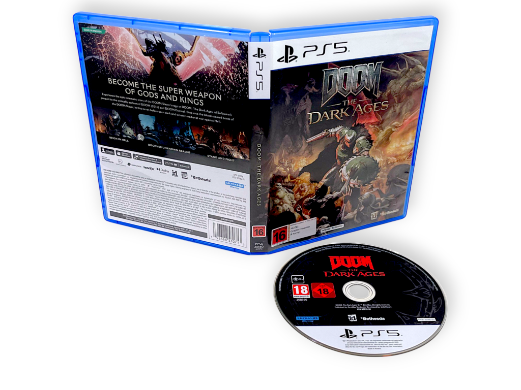 DOOM: The Dark Ages (PS5). This pre-owned Sony PlayStation 5 game is in excellent condition and complete with original taste cover and game desk referee photographs.