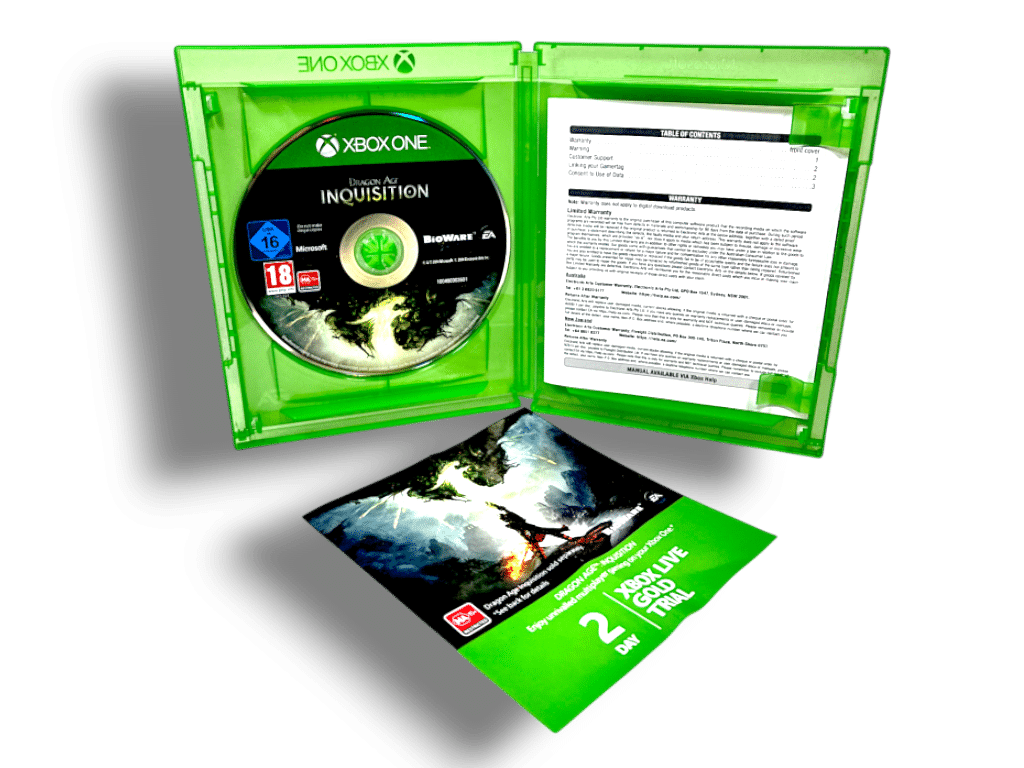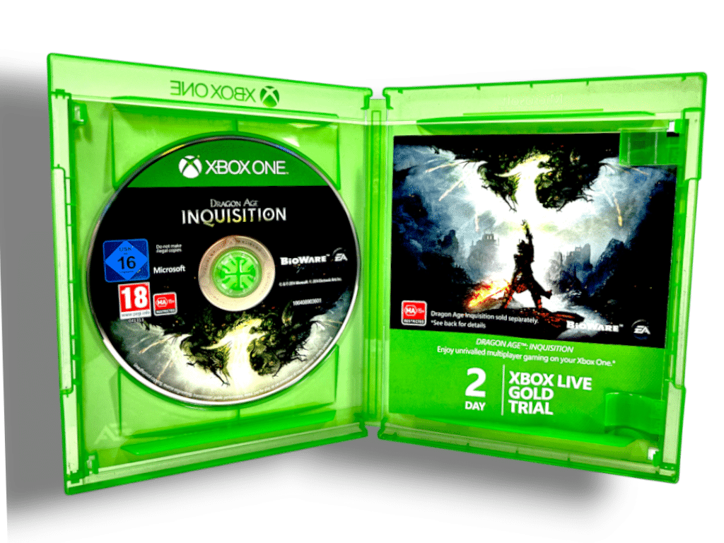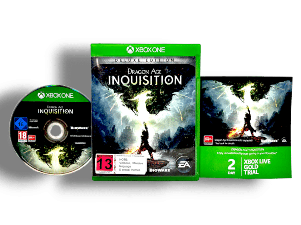 RARE FIND: Excellent Condition & 100% complete with contents: DRAGON AGE INQUISITION DELUXE EDITION for Xbox One. This preowned game is in superb condition – a very tidy and complete collector’s item with authentic Deluxe Edition Case + Cover + Manual / Booklet + Bundled Deluxe Edition Voucher Card (voucher card with paper crease and the code will have expired!) + Game Disc. Remember that any single use “Deluxe Edition” content was downloadable from the bundled paper voucher which has expired (but is included as a collector’s item here). The FULL Dragon Age Inquisition game is included on the game disc.