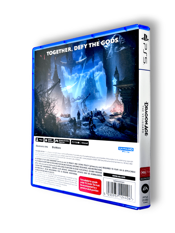 Dragon Age: The Veilguard for SONY PlayStation 5 / PS5. Preowned, but As New and complete with case + cover + carded insert + game disc.Â