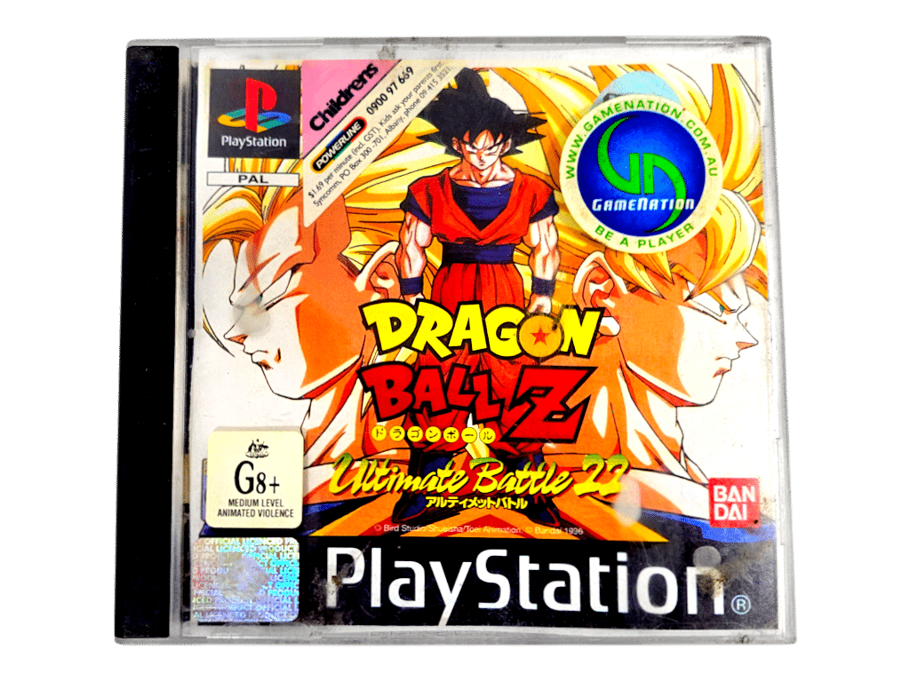 Good condition & 100% complete with contents: DBZ Dragon Ball Z Ultimate Battle 22 for SONY PlayStation 1 / PS1. This preowned game comes complete with pictured ex-rental case + front cover slip + manual / booklet + game disc. Game disc in very good condition. Paperwork has some pictured cosmetic imperfections.