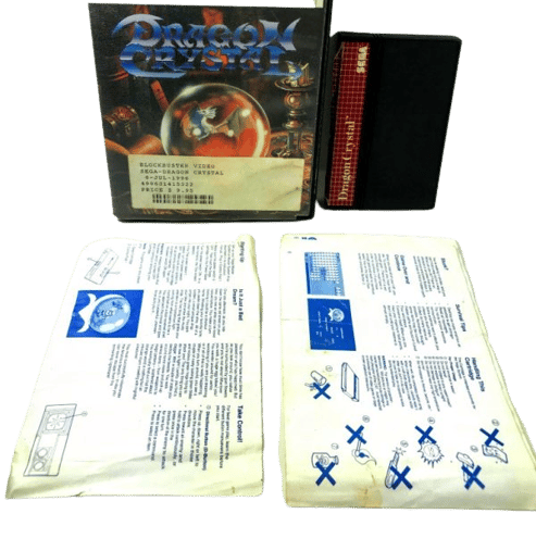 DRAGON CRYSTAL (SEGA Master System). Excellent condition, with original box / case, and instruction booklet / manual. One of the pages has come loose from the instruction booklet as pictured.