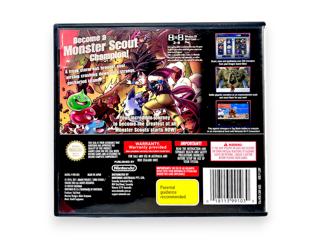 A monster-collecting RPG where players scout, train, and fuse creatures to build powerful teams. Explore varied environments, uncover secrets, and compete in monster battles with deep strategy and huge customisation. A standout DS title offering long-term progression and classic Dragon Quest charm.