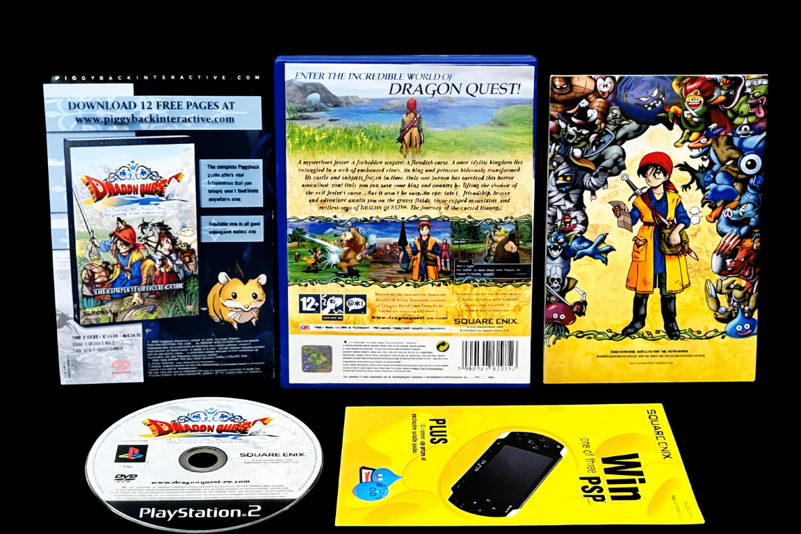 Excellent condition and 100% complete with all contents: Dragon Quest VIII: Journey of the Cursed King (PS2) *EXCELLENT & COMPLETE*. This pre-owned Sony PlayStation 2 game is in superb condition and complete with original case cover, instruction manual booklet, official Dragon Quest promo card along with promotional PSP contest card and game disc. A tidy and complete collector’s item. Refer photographs.