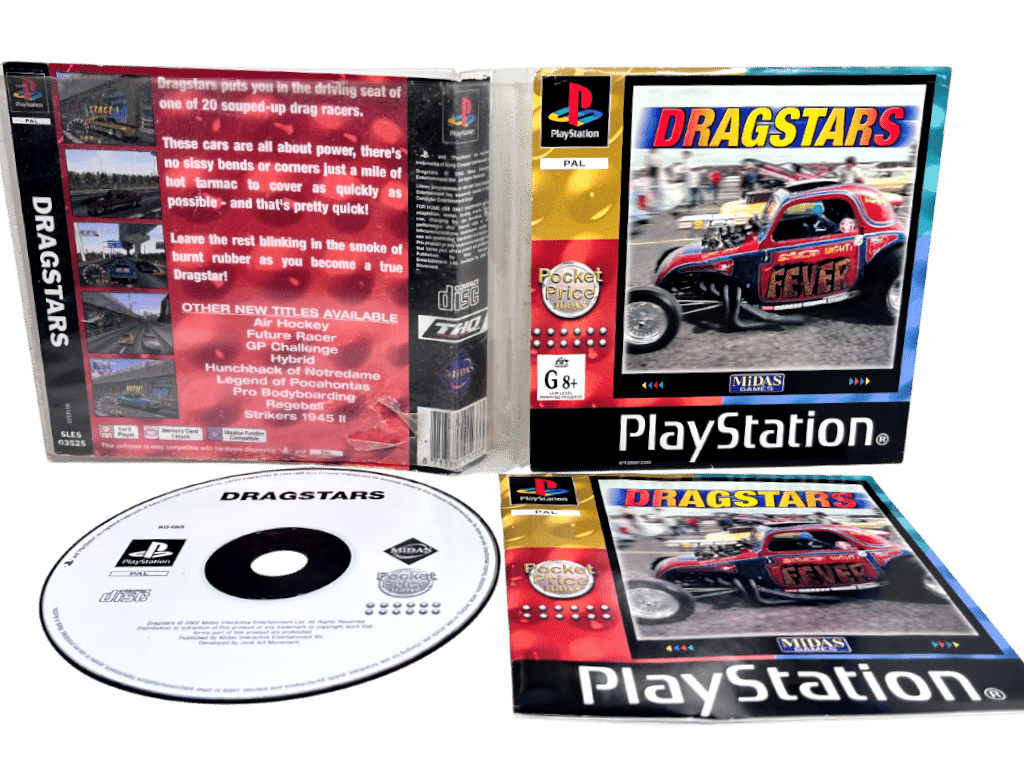 Excellent condition & 100% complete with contents: DRAGSTARS / DRAG STARS / DRAG-STARS / DRAGTSTERS for SONY PlayStation / PS1. This preowned game is in superb condition and comes complete with case + covers (both front and back cover slips included) + manual / booklet + game disc.