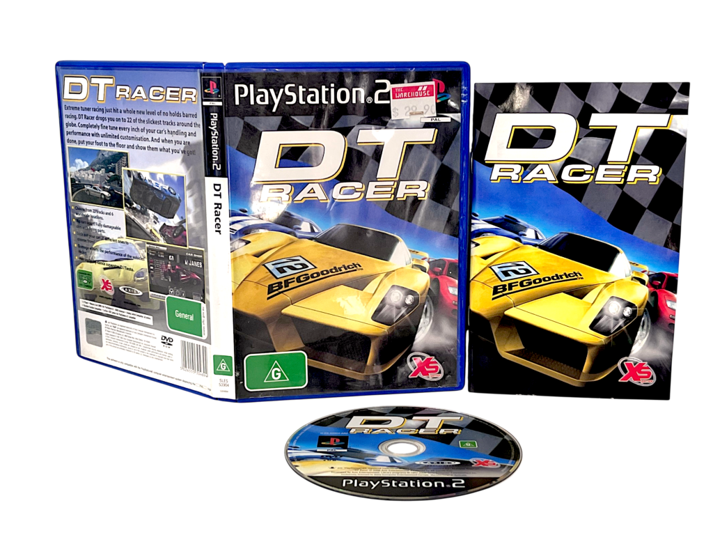 *RARE NZ PAL EDITION with Official NZ “G” print on both Cover and Game Disc – in excellent condition & 100% complete with contents: DT RACER for SONY PlayStation 2 / PS2. This preowned game is in superb condition and includes case + cover + instruction manual / booklet + game disc.