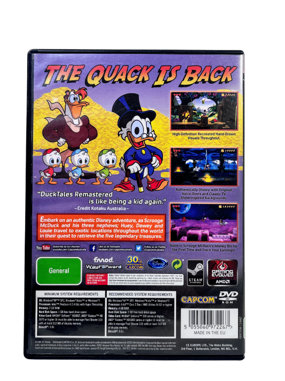 Excellent condition & 100% complete with contents: DUCKTALES REMASTERED for PC. This preowned game is in superb condition and comes complete with case + cover + carded insert + game disc.