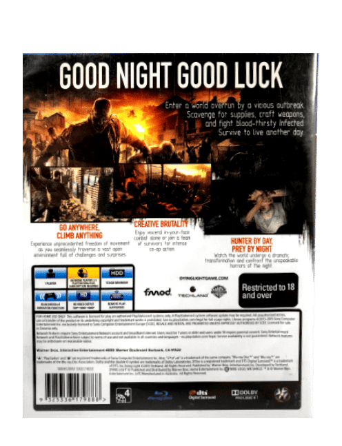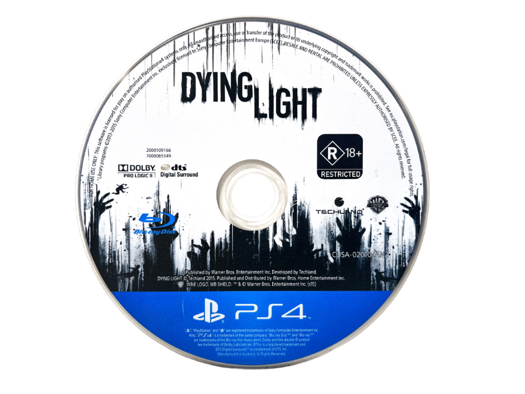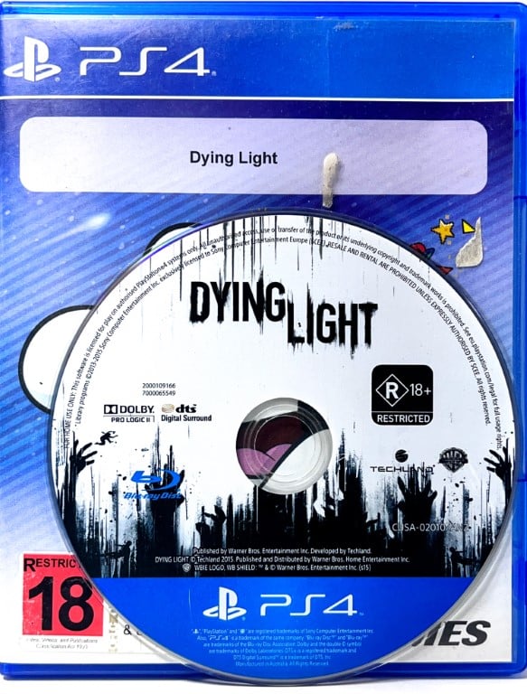 DYING LIGHT for SONY PlayStation 4 / PS4. This preowned game disc is in excellent condition and comes inside case with EB Games paper cover (NOT original paper cover).