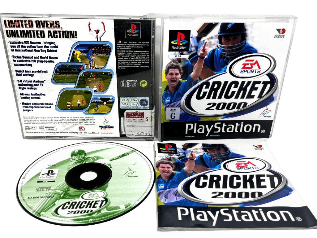 CRICKET 2000 featuring Stephen Fleming, Chris Cairns, and more. For SONY PlayStation / PS1. This preowned PlayStation 1 game comes complete with each of the manual / booklet, and both reverse and front paper cover slips, and game disc. The front panel of the case has a plastic crack, and the disc some light scratches, but these do not affect game play in any way.