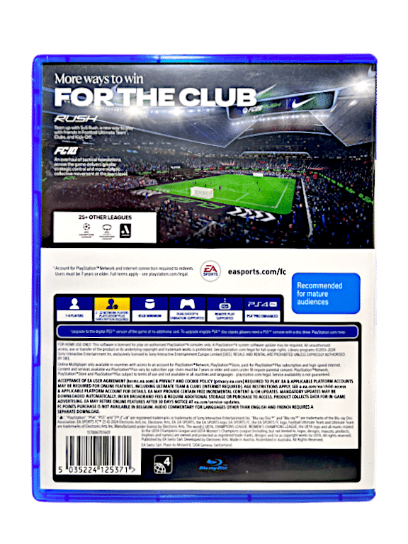 EA Sports FC 25 for SONY PlayStation 4 / PS4. This preowned game is in mint condition and comes complete with case + cover + carded inserts + game disc.