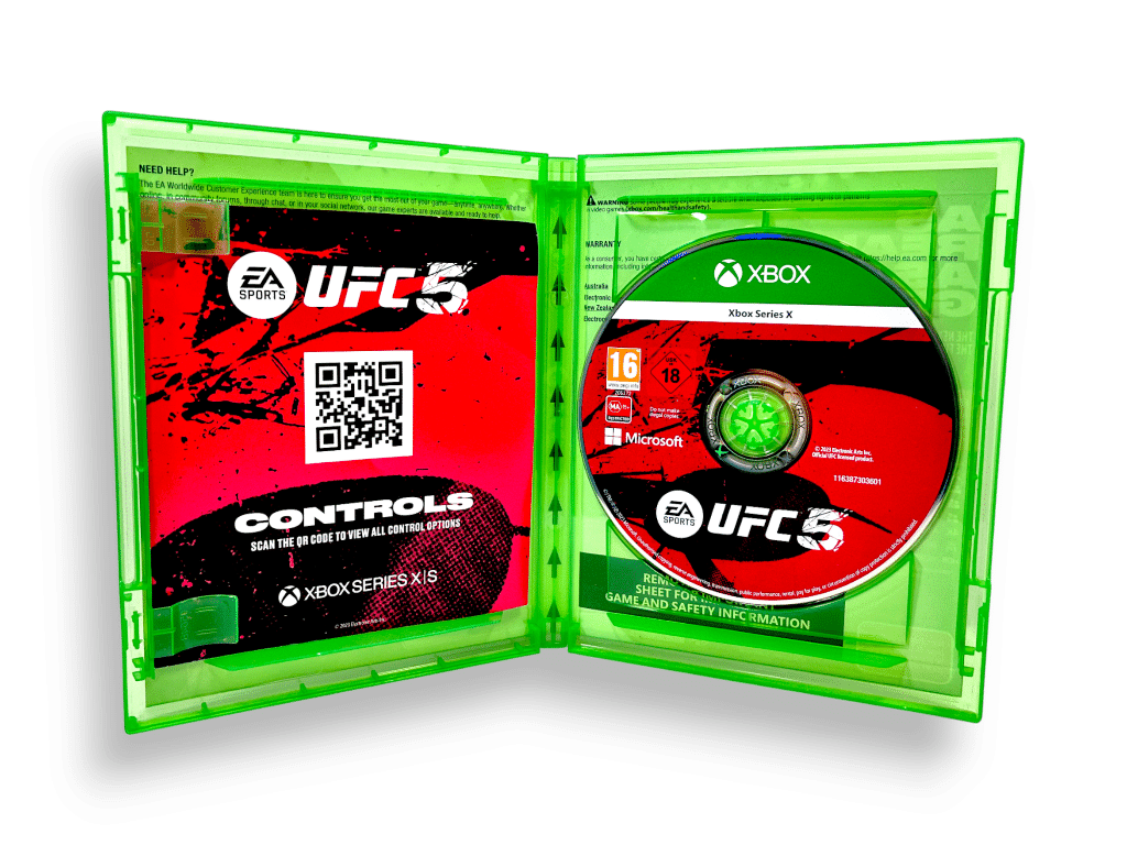 EA Sports UFC 5 (Xbox Series X). This preowned game is in excellent ocndition and complete with case + cover + promo card + game disc.