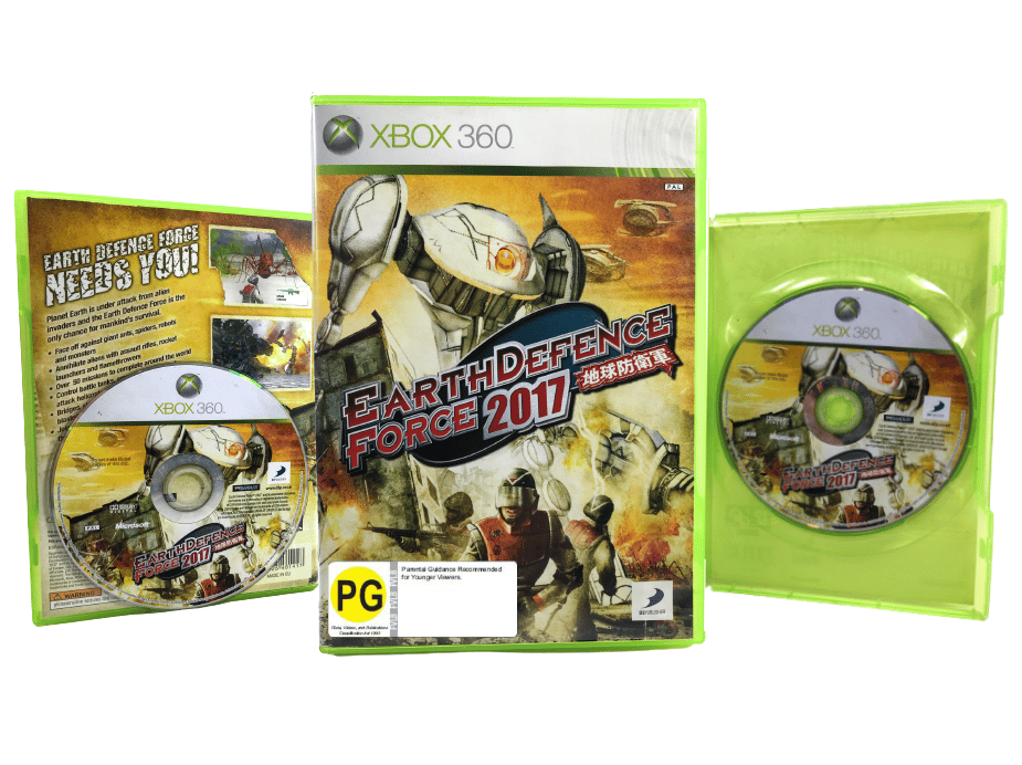 RARE Action/Adventure Game in excellent condition: EARTH DEFENCE FORCE 2017 for Xbox 360. This preowned game is in superb condition and includes case, cover, and game disc.