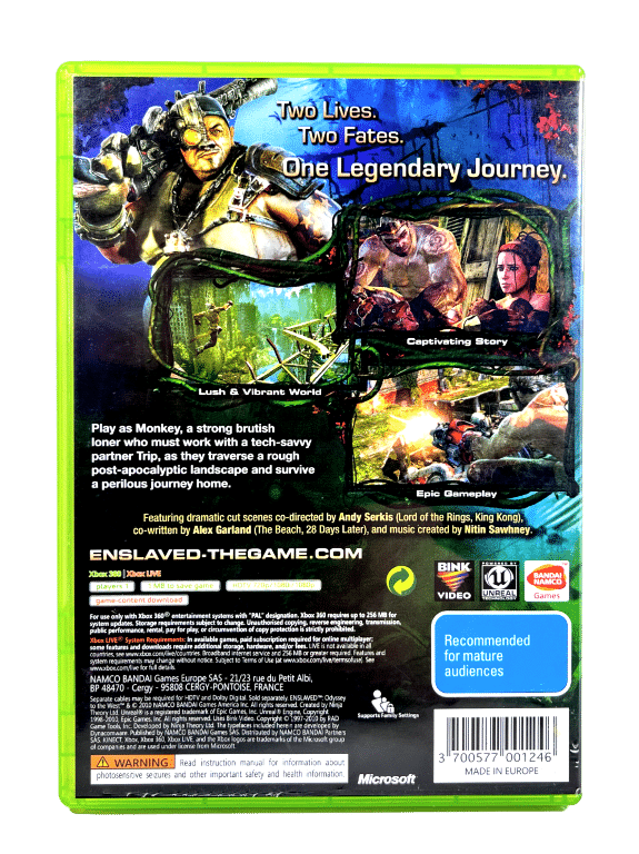 AS NEW & 100% Complete with Contents: ENSLAVED ODYSSEY TO THE WEST for Xbox 360. Pre-owned but as new, a beautiful collector’s item.