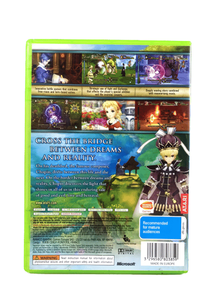 RARE FIND: MINT Condition & 100% complete with contents: Eternal Sonata for XBox 360. This preowned game is in pristine condition – a very tidy collector’s item, complete with case, cover, manual / booklet, and game disc.