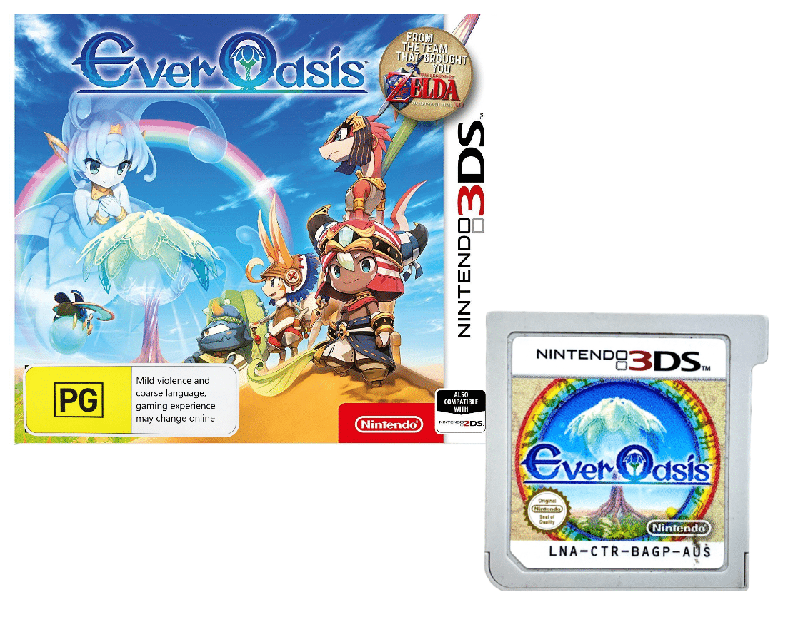 Ever Oasis for NINTENDO 3DS. This preowned game cartridge is in excellent condition and comes inside a miniature plastic container. Please note that the original case is NOT included.