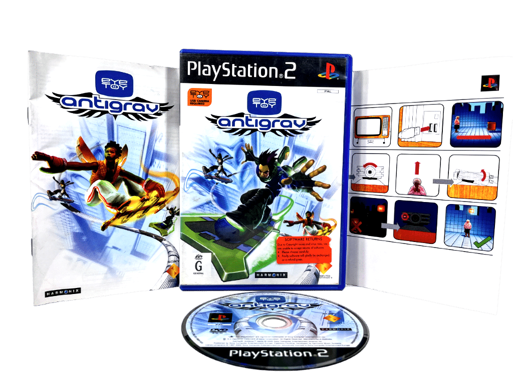 EyeToy ANTIGRAV (Anti Gravity) game + Poster for SONY PlayStation 2 / PS2. . This preowned game is in superb condition and comes complete with case, cover, manual / booklet and game disc. Some superficial scratches that do not affect gameplay.